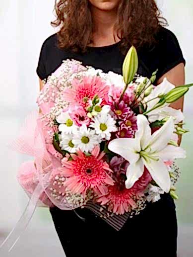 SERAMİKTE KIRMIZI GÜL VE BEYAZ PAPATYA